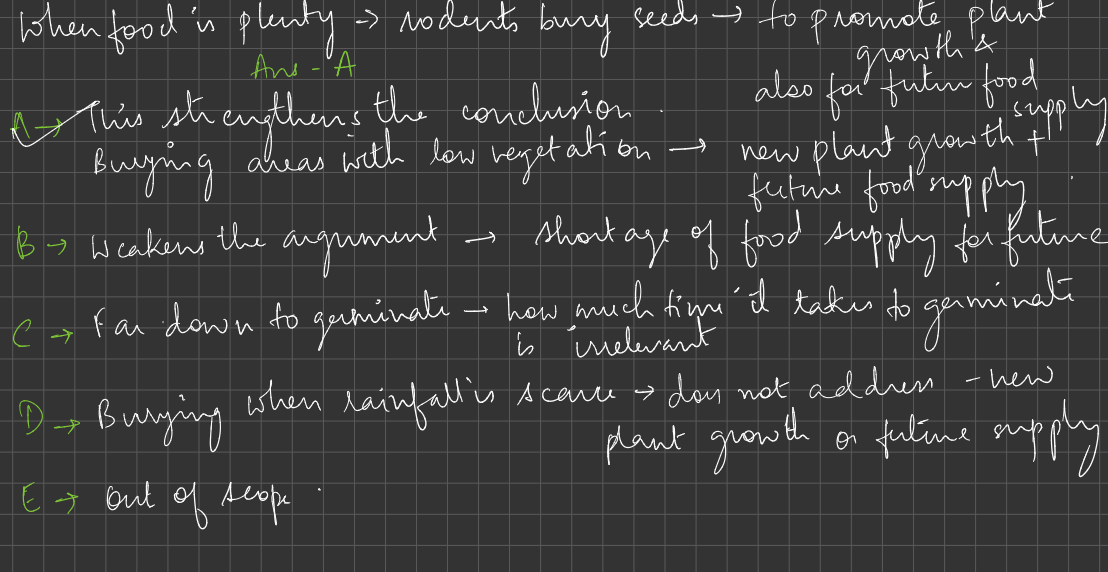 So the question starts by telling us that certain rodents bury seeds in shallow shallow underground caches even if they have plenty of food available to them, and they rarely recover all the seeds which they store. Now it tells us that based on this behavior of rodents the researchers have hypothesize that seed burying functions not only as food storing but also a way to promote new plant growth around the area where they live, thereby boosting the food supply for future.