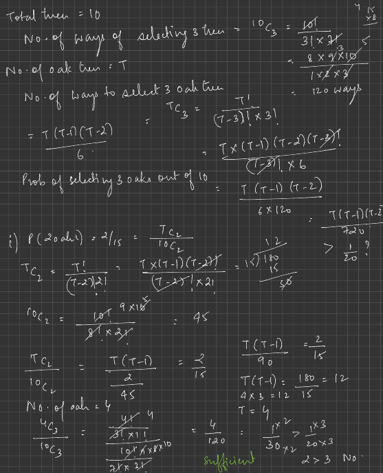 => \(\frac{x(x-1) }{2}\) / \(\frac{10.9}{2}\) = 2/15