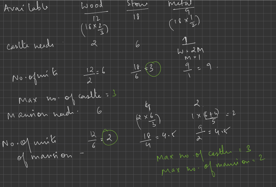| Mansion, \(m\) | 6 | 4 | 2 |