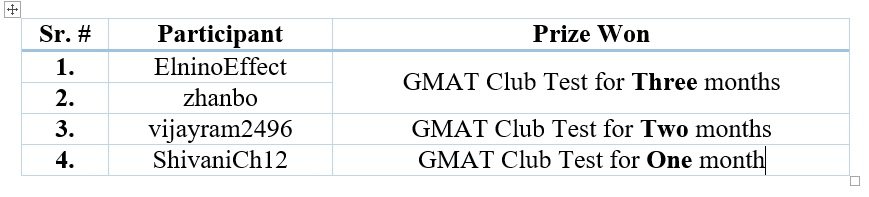 Honestly speaking this was not the response I was expecting as this is far below par. Last time we have 12-14 genuine participants who remain with us till the end of the competition but this time the response from the members was less than 2x. I can understand that the covid crises, GMAT waiver from business school, and the current escalation of war could be the contributors to this below-par response. I hope and expect we will have a good number of participants in the future competition.
