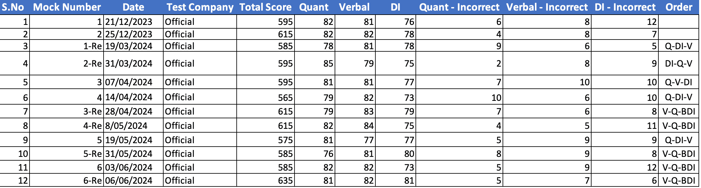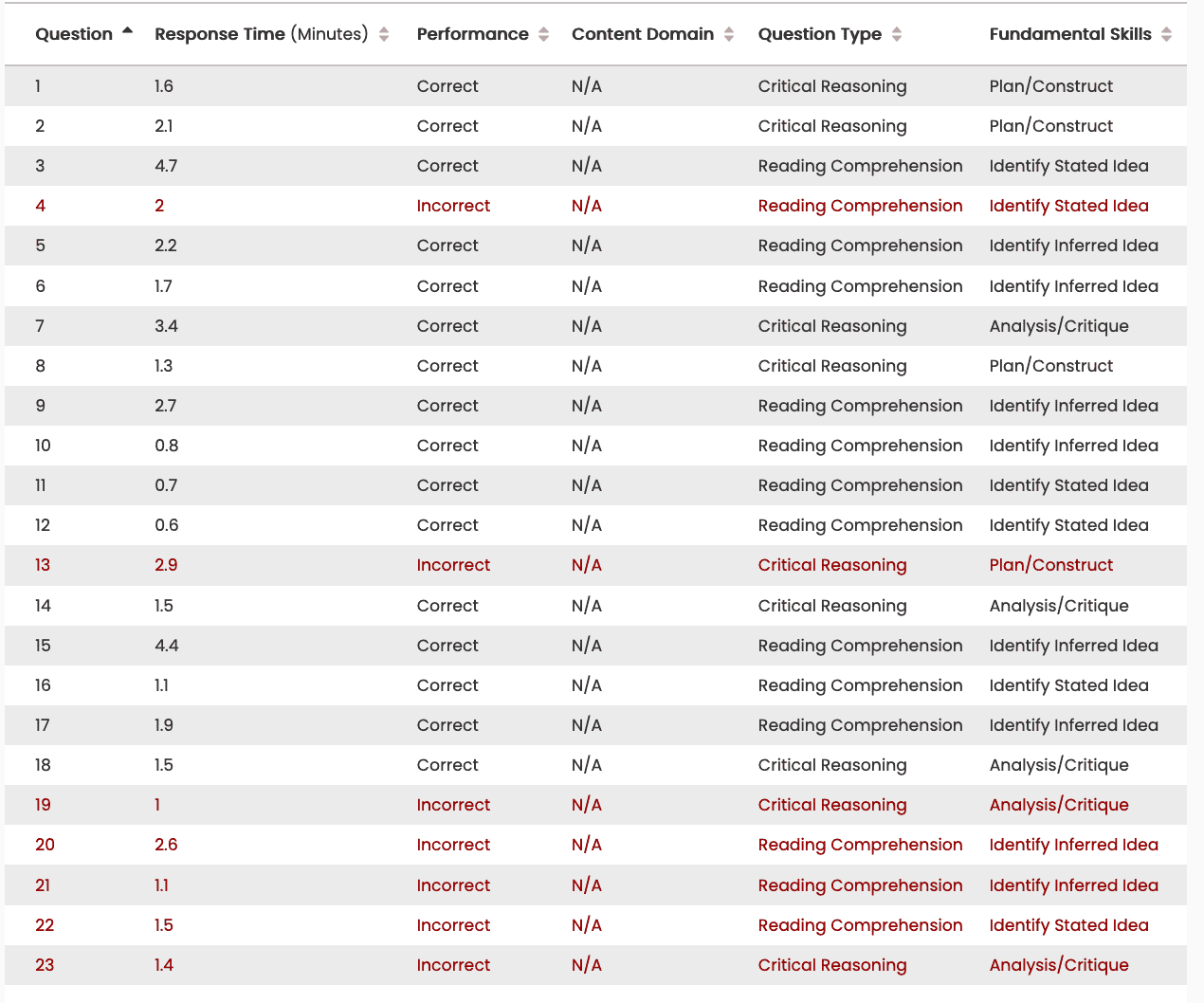 All right, what I see is that in two and three which I think are your verbal and data insights, your last five questions are wrong.