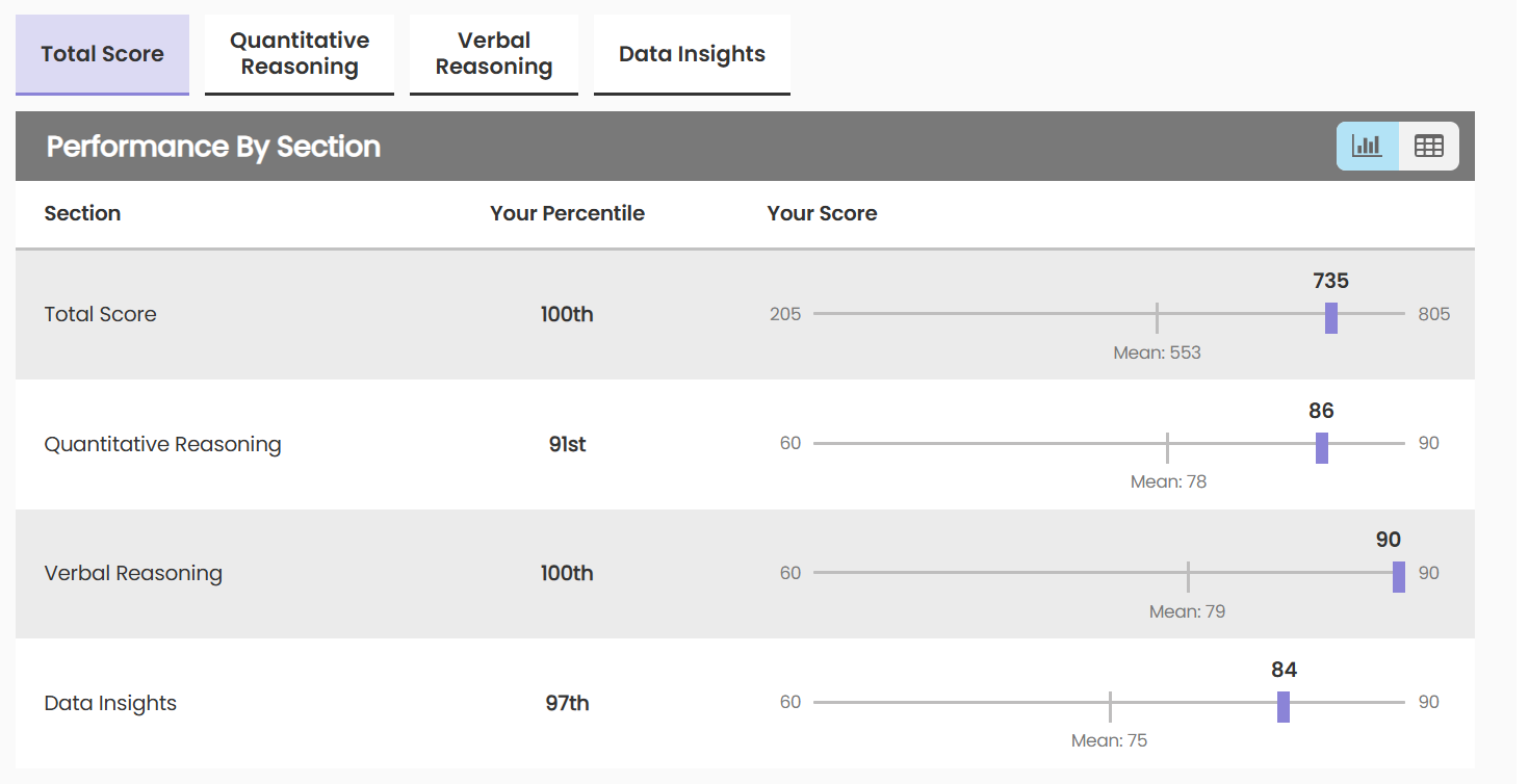 That gave me a rough sense of the work ahead - especially in Quant and Verbal timing - and from there, the real prep began.