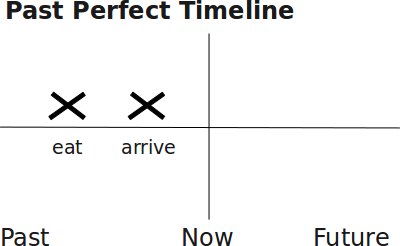 Jack had eaten by the time I arrived. (Jack started and finished eating by the time I arrived. Both actions are in the past.)