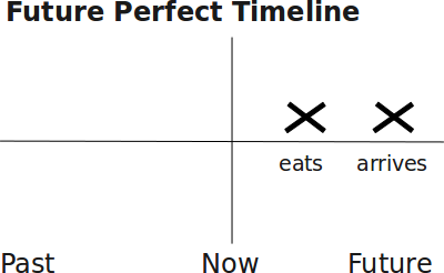 Sally will have eaten when Sue arrives. (Sally starts and finishes eating by the time Sue arrives. Both actions are in the future.)