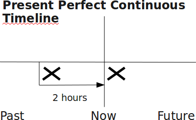 The perfect continuous tense are used to express the duration between two actions or events. Often, an expression of time is used with perfect continuous tenses.