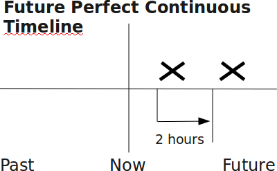 Sue will have been studying for two hours when her friend arrives. (Sue starts and finishes studying before her friend arrives. Both actions are in the future.)