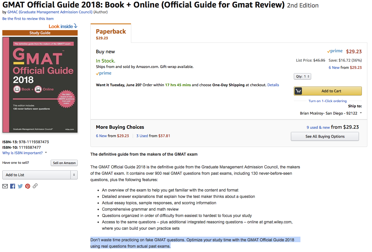 GMAT Official Guide 2018: The new GMAT Official Guide is slated for release on June 12. All of the questions in this year’s edition will be available on Wiley’s Efficient Learning platform, which runs faster and features options unavailable in the online platform for previous editions of the Official Guide (see table below). To access the platform, readers must use the access code found in the print book. We hope users will find this online material helpful in their study.