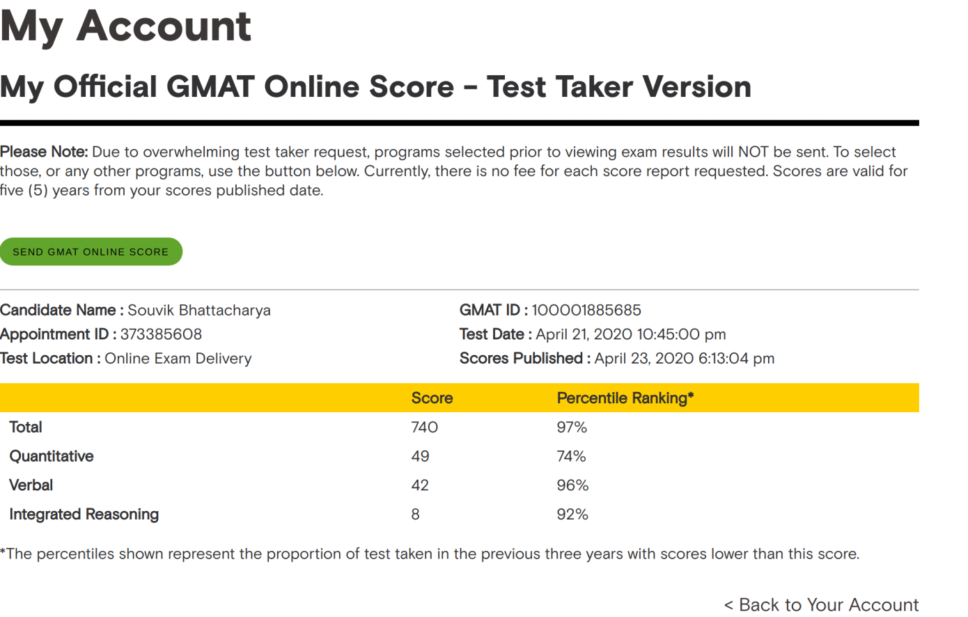 Awesome news--thanks for sharing! Can you also confirm that these scores are NOT included on the test-taker score report, which lists all test center GMAT scores from the last 5 years?