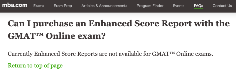 Likewise, there used to be an anchored question on the official FAQ page explaining that ESRs (Enhanced Score Reports) are not available.