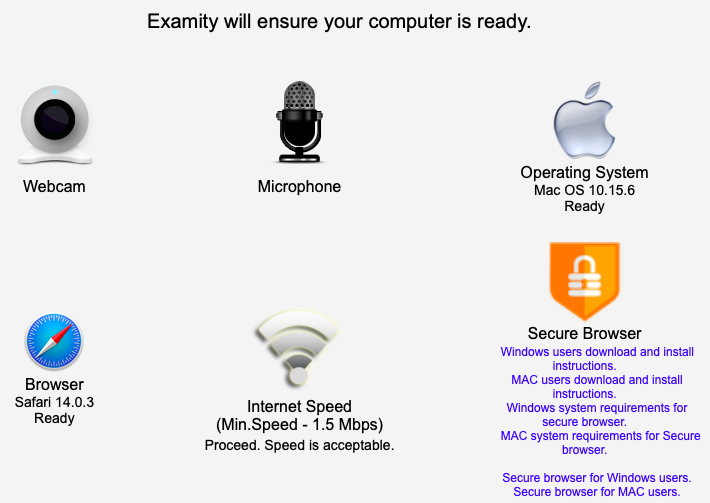 This doesn't necessarily mean that Examity's ESSecureBrowser won't work on newer Apple computers and operating systems (the software system requirements simply might not have been updated for a while), but for now it's definitely a concern. I don't know whether