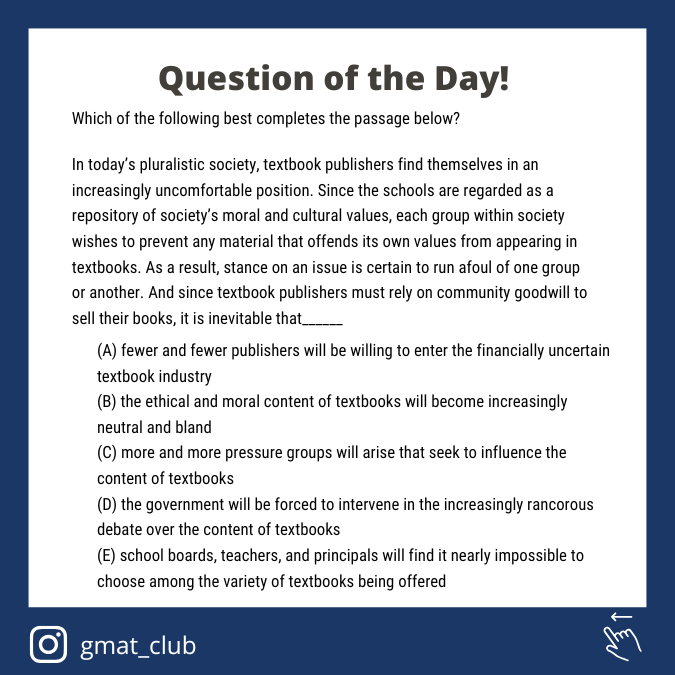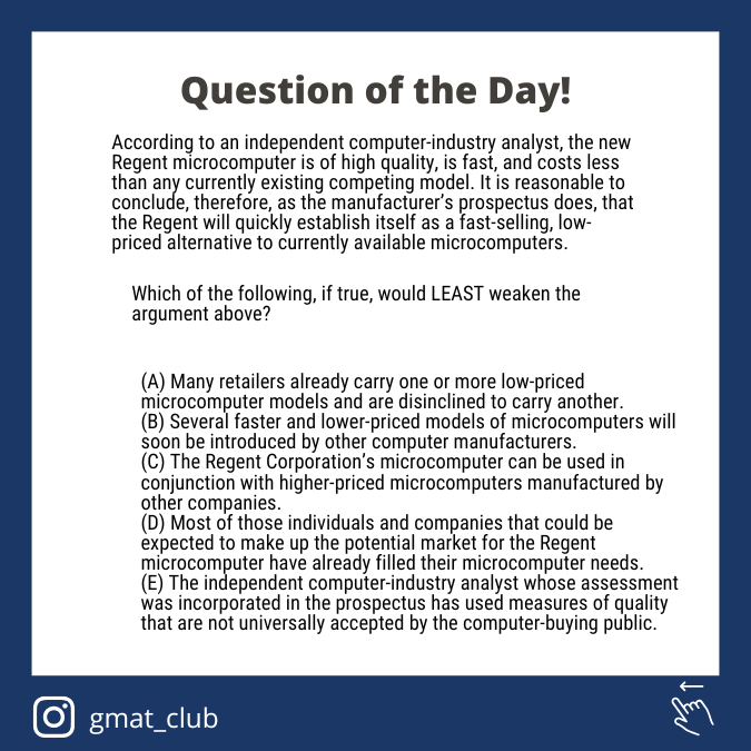 Thank you for using the timer - this advanced tool can estimate your performance and suggest more practice questions. We have subscribed you to Daily Prep Questions via email.