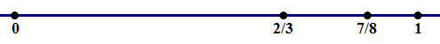 Result = 7/8 — this fraction is closer to one than is 2/3: on the number line —–