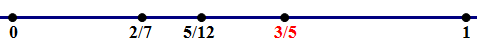 Resultant fraction = 5/12— this fraction is closer to 3/5 than is 2/7 —-