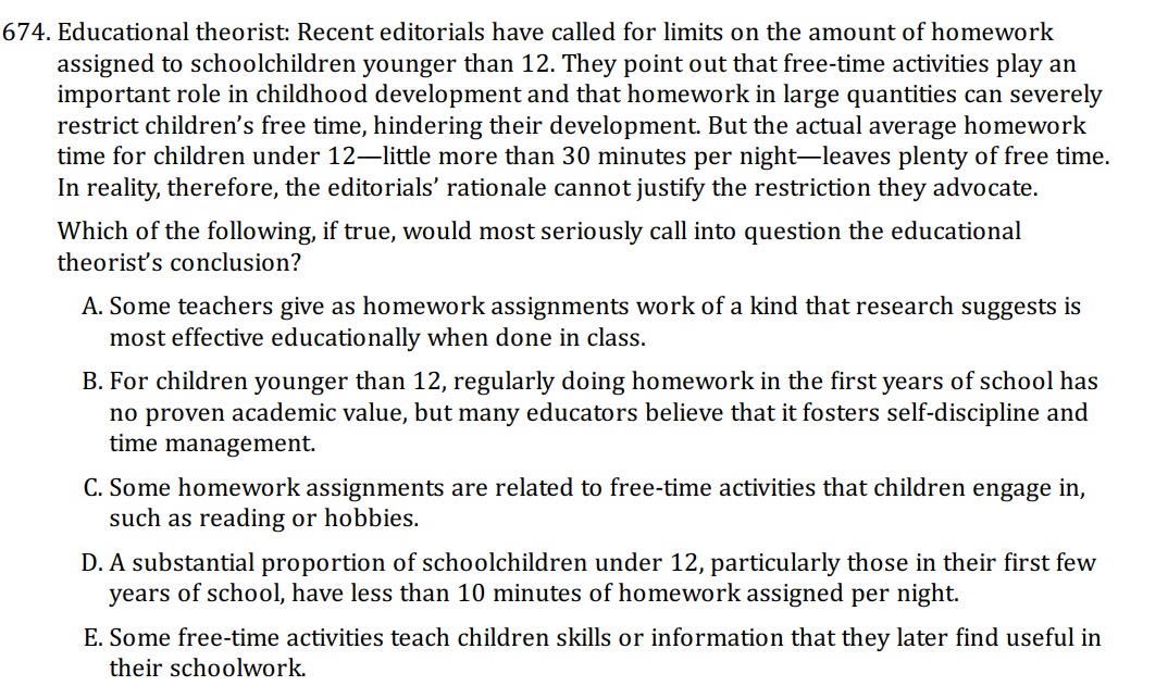 Second way to speed up your CR is to answer the question in your own words first. This will save you a lot of time on about 50% of the questions (not 100%) but saving 1 minute on half of the CR’s is quite a bit of time.