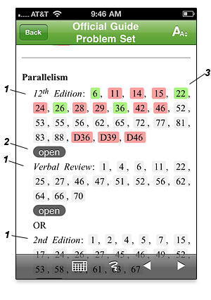 Manhattan GMAT Sentence Correction book in interactive format (stats, history, OG Tracker integration etc; see screenshots above)