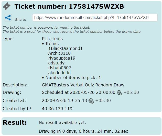 Results of the Verbal Quiz shall be announced in next 12 hours.