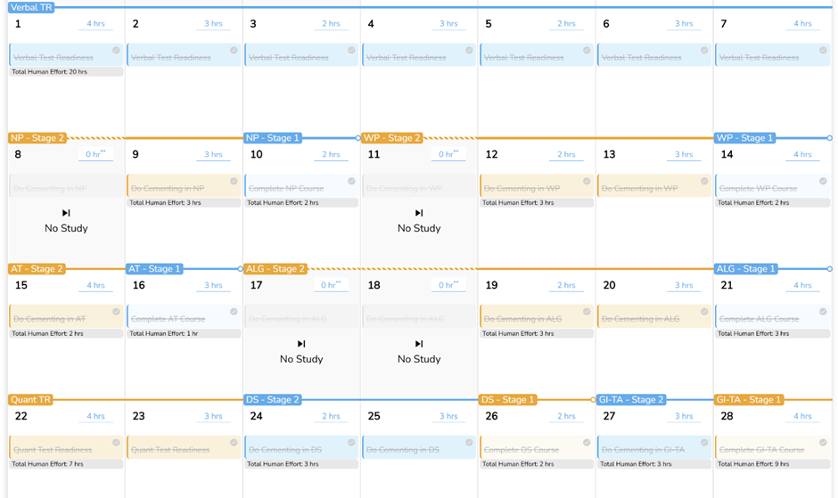 My Initial Challenges and how having a study plan helped:As a working professional, my main hurdle wasn't content but finding the discipline to study consistently after long workdays. The e-GMAT personalized study plan was crucial—it mapped everything from day one to test day and highlighted my weak areas to maximize efficiency. he plan mapped everything out from day one until my test date, giving me clarity on how much time I needed to dedicate daily and weekly.