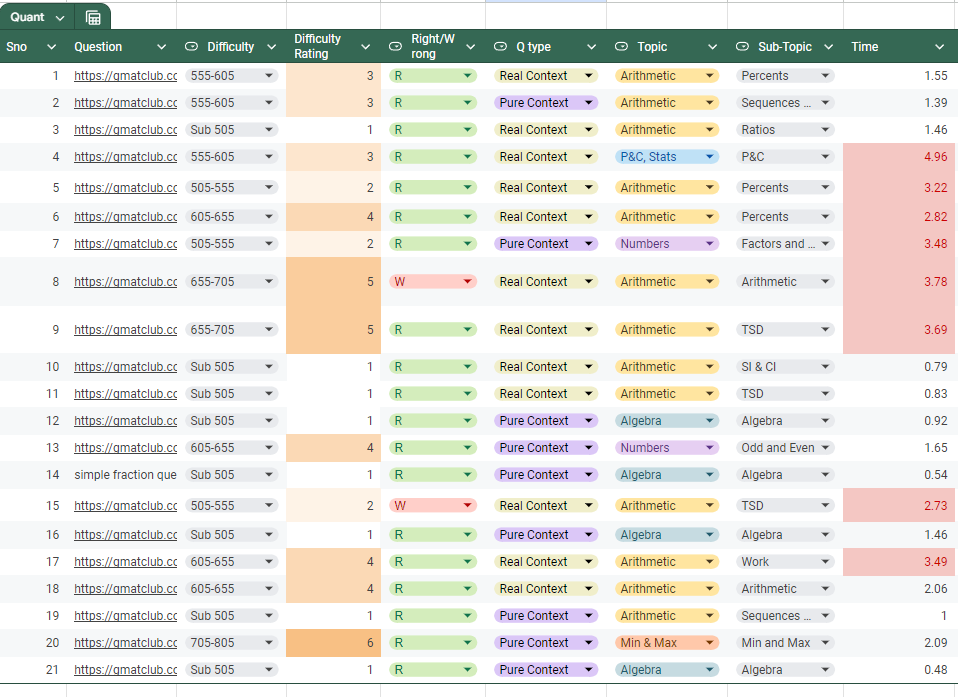 My score in Quant is 85 points (89th %ile)This is how I plotted the graph: I looked at each question on the GMAT Club forum, noted their difficulty level, and plotted against accuracy.
