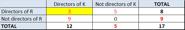 (1) There were 17 directors present at a joint meeting of the directors of Company K and Company R, and no directors were absent.