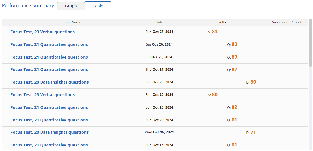 In addition, one way to improve each individual DI question type is to engage in topical practice. Doing so lets you pinpoint your weak areas in JUST ONE question type. For example, when practicing TPA questions, perhaps you see a pattern that you struggle with 3-part ratios or weighted averages. If you can find those micro weaknesses, you can fix them in real-time and thus improve your speed and timing in DI questons.