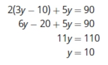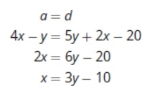 Substitute x = 3y − 10 into the first equation and solve for y.