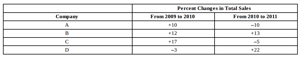 When Company D’s value decreased by 3%, it retained 97% of its value of $66,000,cwhich is .97 × 66,000 = $64,020. In the following year, it increased in value by 22% of this, or .22× $64,020 = $14,084.40. When this increase is added to 64,020, the final value becomes $78104.4,cwhich rounds to $78,104.
