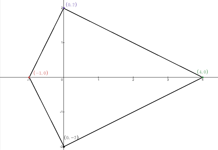 If vertices of a triangle have coordinates (-1,0), (4,0), and (0,A) , is the area of the triangle greater than 15 ?