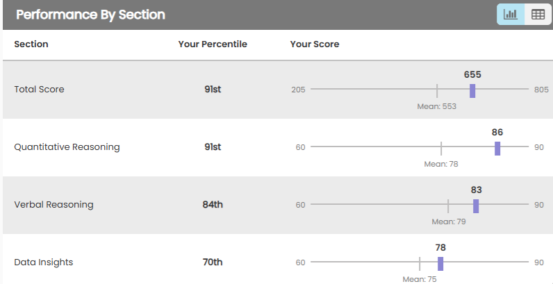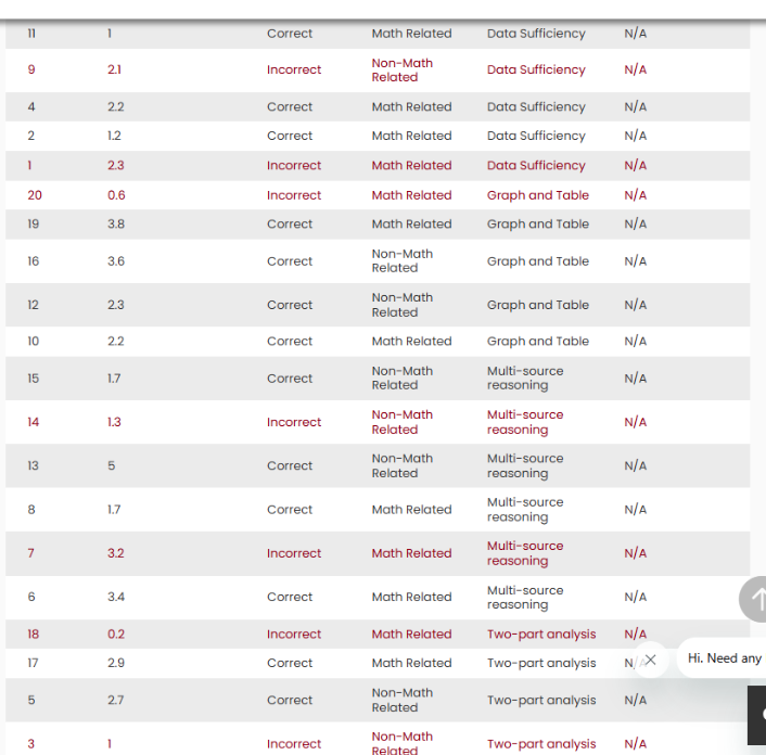 In addition, one way to improve each individual DI question type is to engage in topical practice. Doing so lets you pinpoint your weak areas in JUST ONE question type. For example, when practicing TPA questions, perhaps you see a pattern that you struggle with 3-part ratios or weighted averages. If you can find those micro weaknesses, you can fix them in real-time and thus improve your accuracy in DI questions..