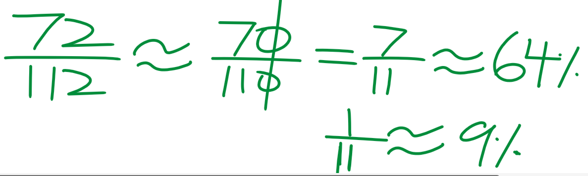 \(\frac{72}{112} = 0.6429 = 64.29\%\)