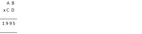 for multiplication : either D OR B must be 5, otherwise we cant get 1995