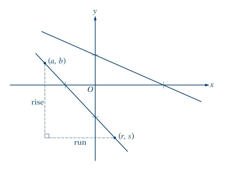 Choice C, it is helpful to recall the definition of the slope of a line passing through two given points. You may remember it as “rise over run.” If the two points are (a, b) and (r, s), then the slope is (b-s)/(a-r).