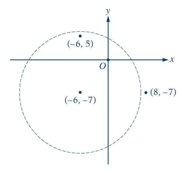 In this question you are given that the point with coordinates (-6, -7) is the center of circle C, the point with coordinates (-6, 5) lies inside circle C, and the point with coordinates (8, -7) lies outside circle C, so you could draw the following figure.