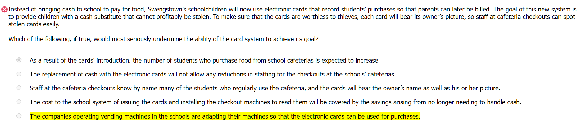 We have to weaken the ability of the card system to achieve its goal. Hence, the correct answer will provide us with information that highlights why the plan will not achieve its goal.