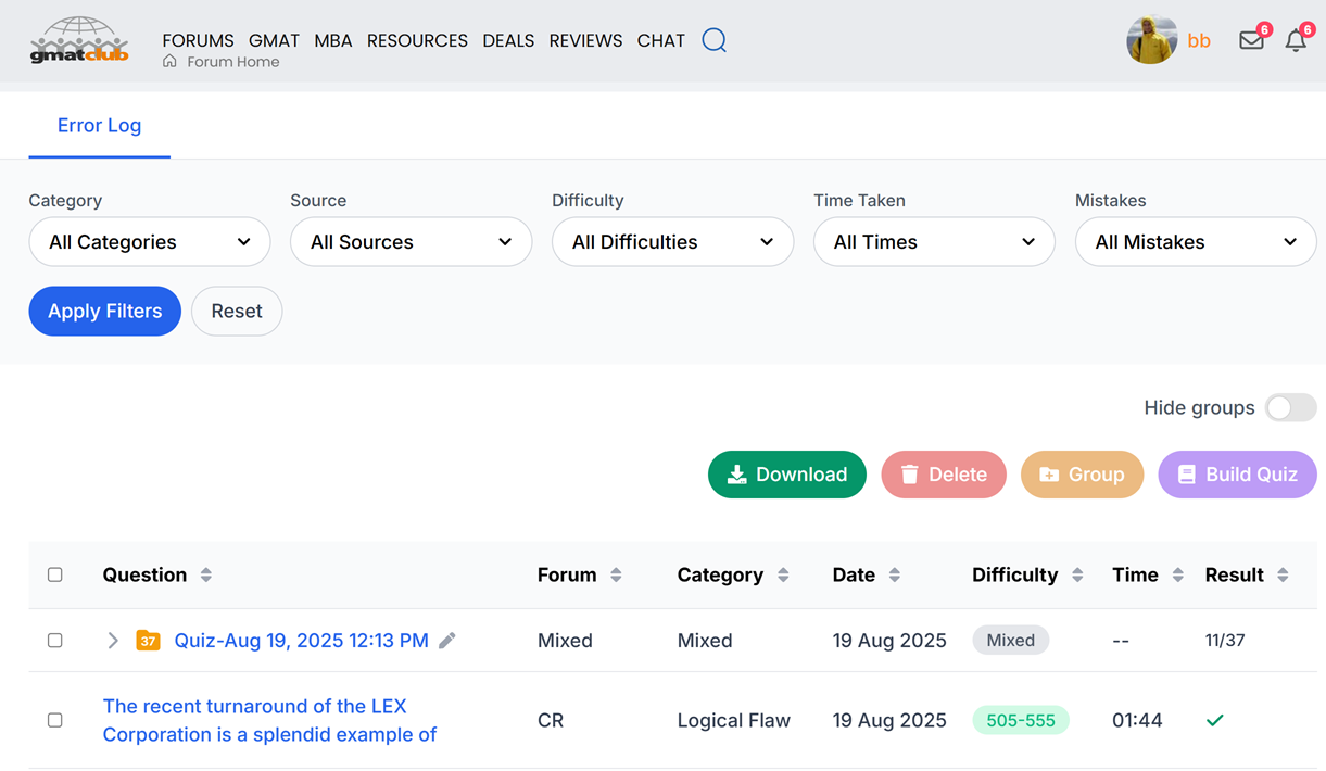 Very excited to share that the new GMAT Club Error Log 2.0 is now live!It will track your practice across everything you do on GMAT Club: Forum Timer,