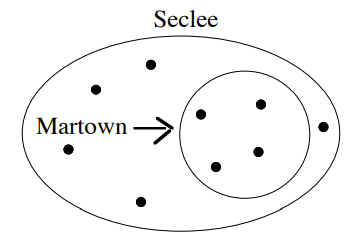 (B) Yes. If Martown were entirely within the boundary of Seclee, then there would be at least as many trees in Seclee (probably more) as there are in Martown since every tree in Martown would also be in Seclee. The following diagram may help: