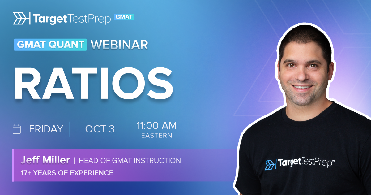 Target Test Prep for a free GMAT Quant Webinar on Ratios on Friday, October 3, at 11:00 AM EST. If you’re struggling with tricky Ratio Questions, Jeff will provide expert guidance to help you navigate this challenging question type with confidence.
