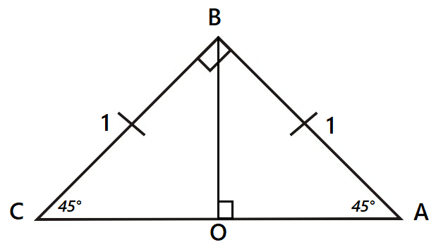 If so, it would then lead AO = (sqrt 2)/2 (half of the base of isosceles triangle)