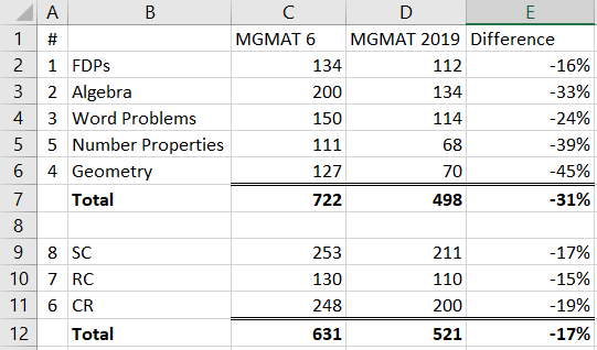 Quant & Verbal Changes: - Overall, cut verbal content by 17% and Quant by 30% of page volume