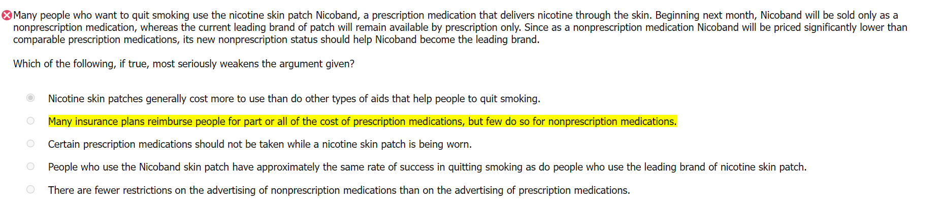 After all, if what this choice says is true, the it's likely that people who buy prescription brands will be reimbursed for part or all of the cost whereas people who buy Nicoband won't be reimbursed.