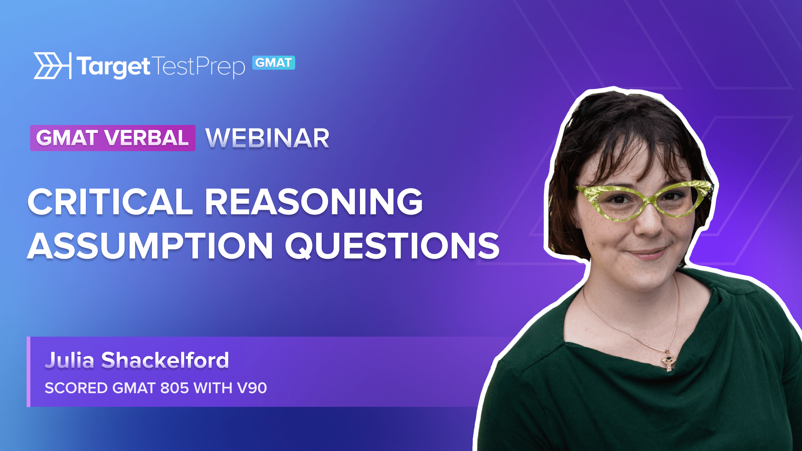Did you miss the GMAT Critical Reasoning Assumption Questions webinar with a perfect scorer? No problem! Watch the recording of the session now available on our YouTube channel. In this webinar, GMAT perfect scorer Julia dives deep into assumption questions—one of the trickiest parts of Critical Reasoning. She shares actionable tips, proven strategies, and insights from her own prep to help you identify assumptions quickly and accurately.