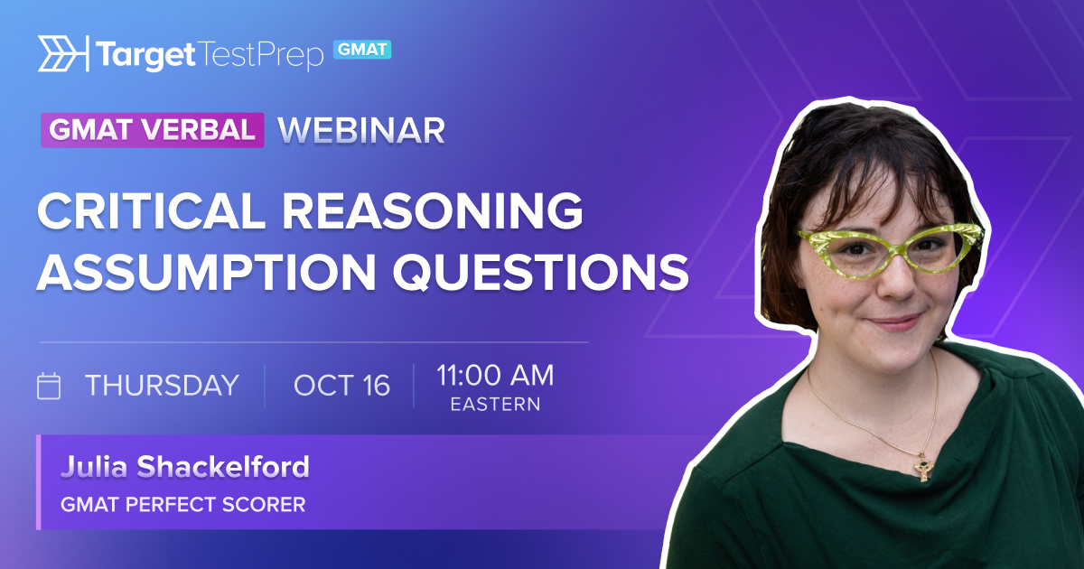 Critical Reasoning Assumption Questions on Thursday, October 16, at 11:00 AM EST (8:00 AM PST).