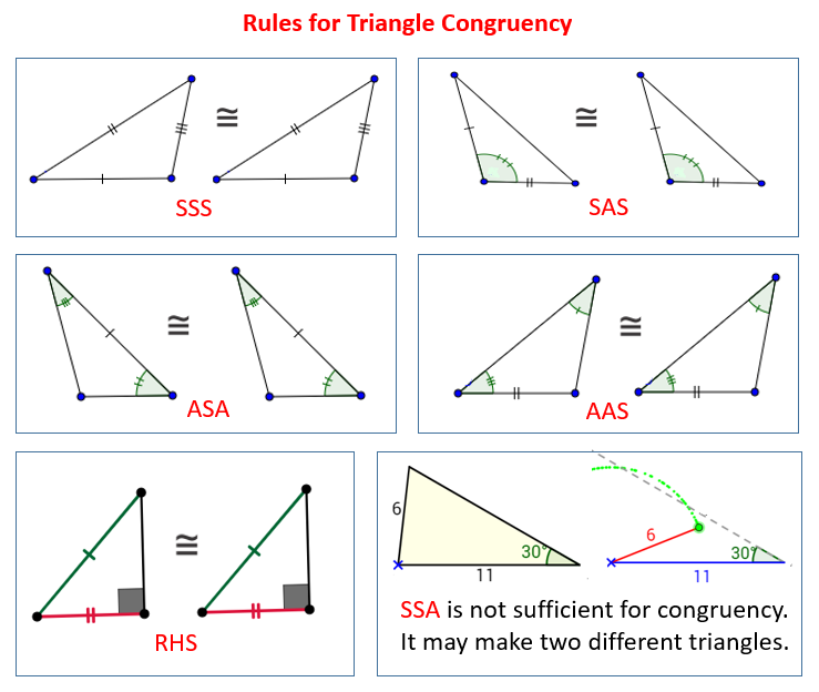 • If two similar triangles have sides in the ratio \(\frac{x}{y}\), then their areas are in the ratio \(\frac{x^2}{y^2}\)Congruence of triangles Two triangles are congruent if their corresponding sides are equal in length and their corresponding angles are equal in size.1.