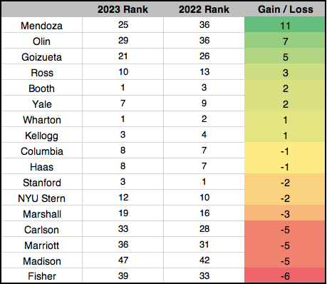 | 4 | Northwestern – Kellogg | 10 |