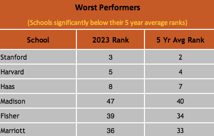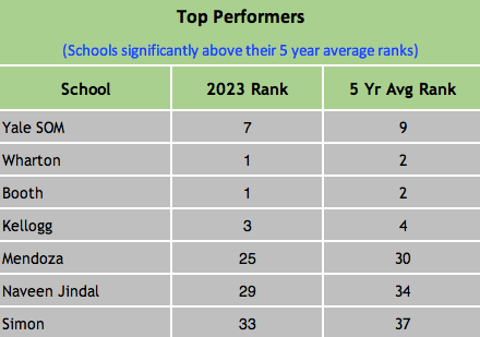 Schools that showed remarkable / miserable performance on the ranking ladder this year.Schools Significantly Above or Below their Average Ranks