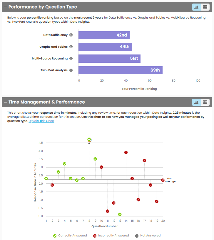 2. You take time and study for 30 days or something like that and knock out an extra 50-80 points with high confidence of achieving that result by studying and working on your weaknesses. Since you have room on all Q, V, and DI, I feel you are in a good position to focus on your low hanging fruit. E.g. if you love one aspect of the test and hate another, you can focus on building up strengths and hopefully have some time left for weaknesses too or perhaps mix and match a bit but you have enough runway. To get an extra 70 points you need 10 points among Q, V, and Di, so add 3 to each or 5 and 5 or 4, 4, 2. You Decide!