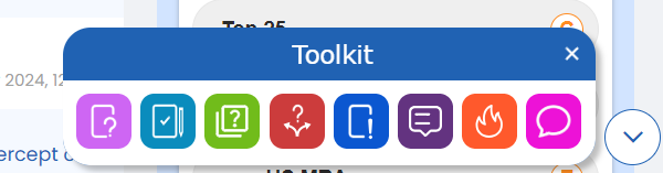 You can also access the toolkit from the bottom of every page by clicking on "Toolkit." From there, it contains more items: