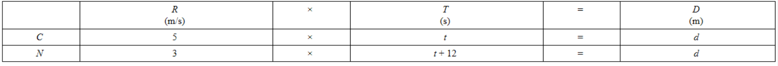 t + 12. The question asks about the moment when Cristina catches up to Nicky, so they both travel the same distance to get to that point. Finally, the rate and time both use seconds, so it’s not necessary to convert anything before solving.
