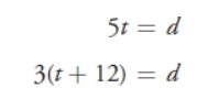Both equations equal d, so set the left-hand sides equal to each other and solve for t.