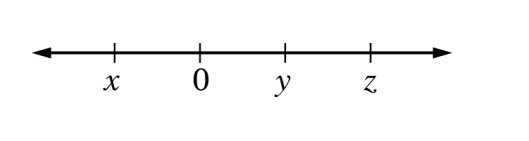Official ExplanationYou can see from their positions on the number line that x is less than 0 and both y and z are greater than 0. Because the tick marks are equally spaced, you can also see that x = -y and z = 2y. You need to evaluate each answer choice separately to determine whether it must be true.