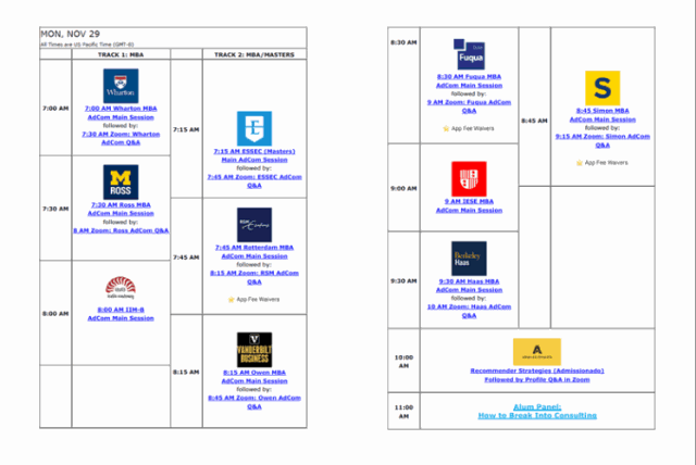 TRACK 1: MBA | TRACK 2: MBA/MASTERS | |||
